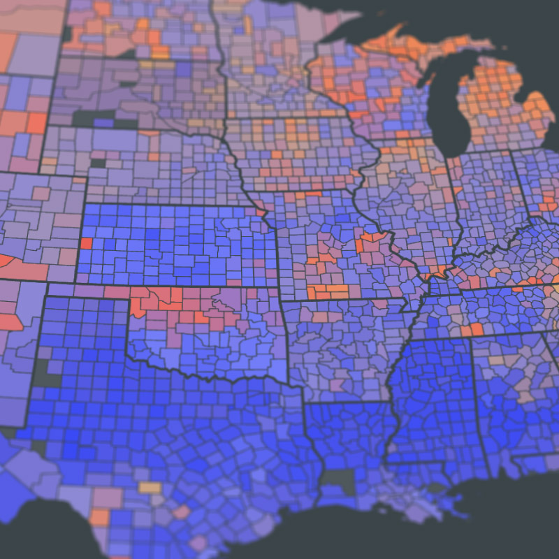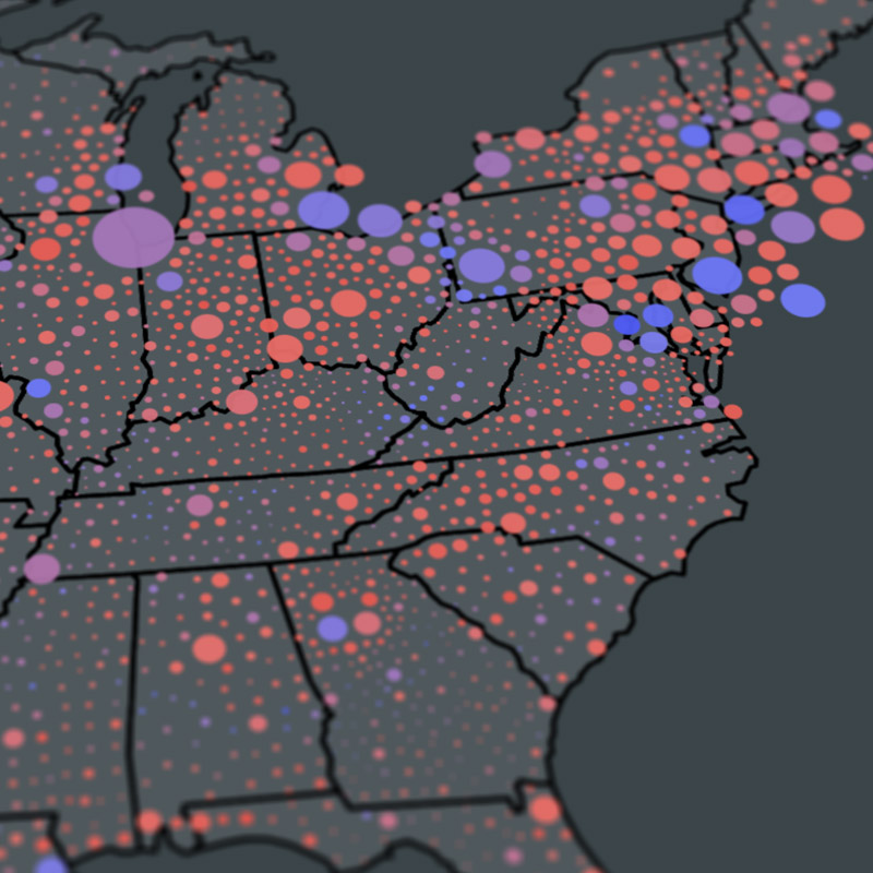 Most presidential election maps emphasize the candidates and parties who won or lost the Electoral College. Electing the President shifts the focus to American voters, highlighting the more complex and nuanced landscape of the popular vote across nearly 50 presidential elections dating back to 1840.